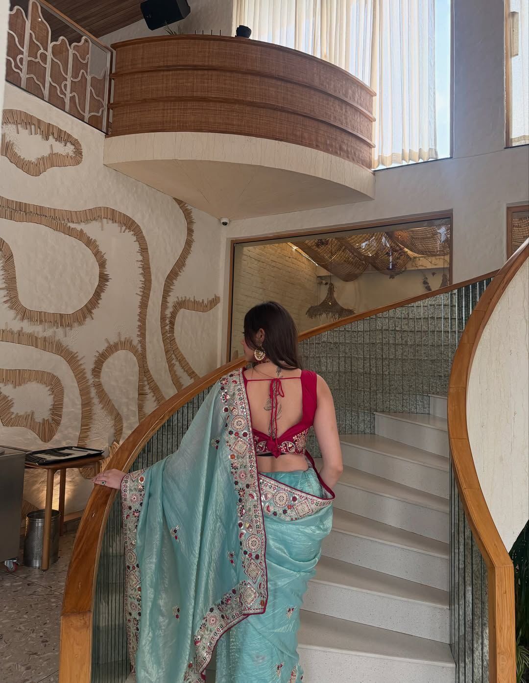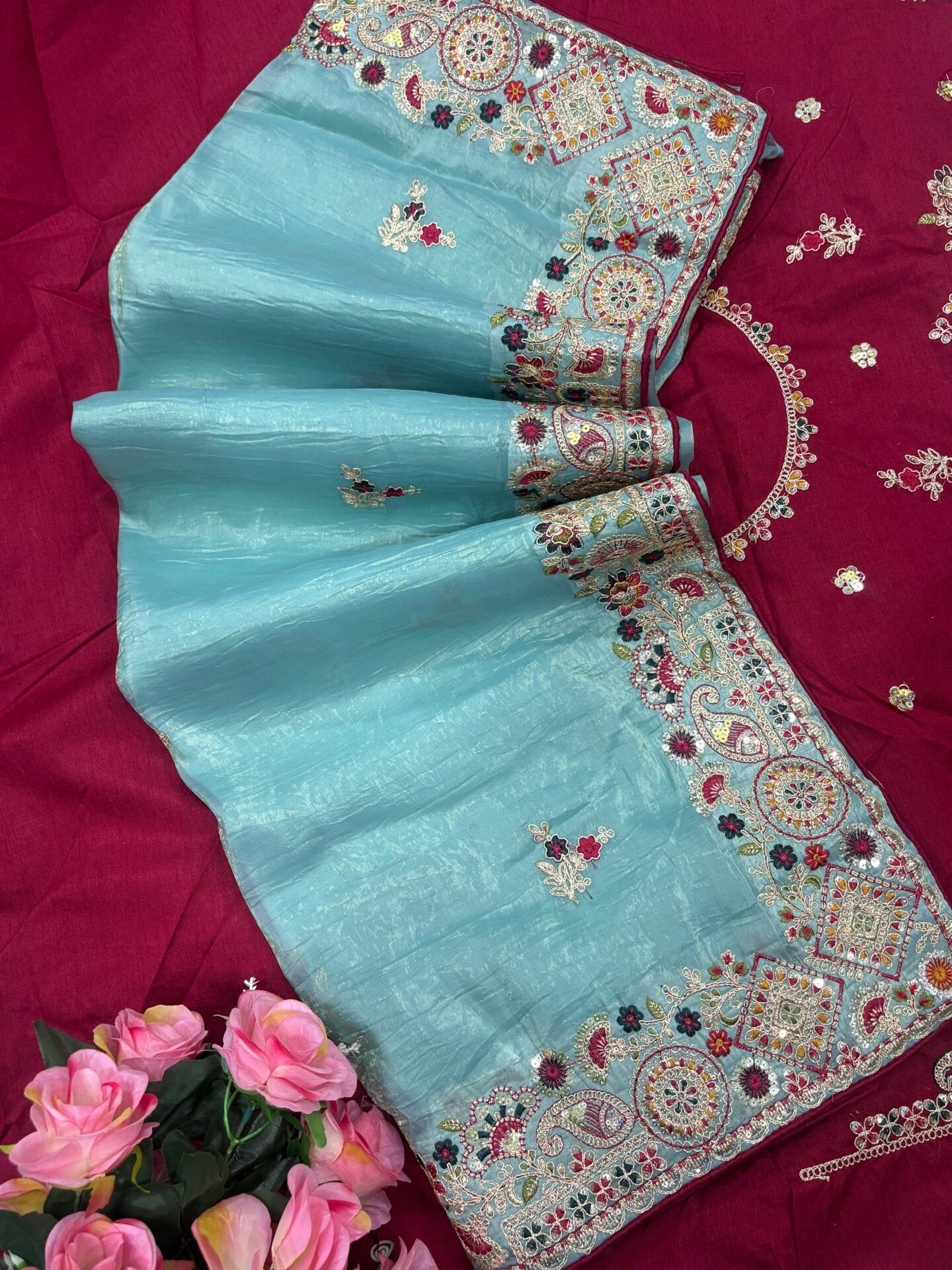 Apex Special Saree – Fendy Satin Dual-Shaded Saree with Zari & Sequins Work