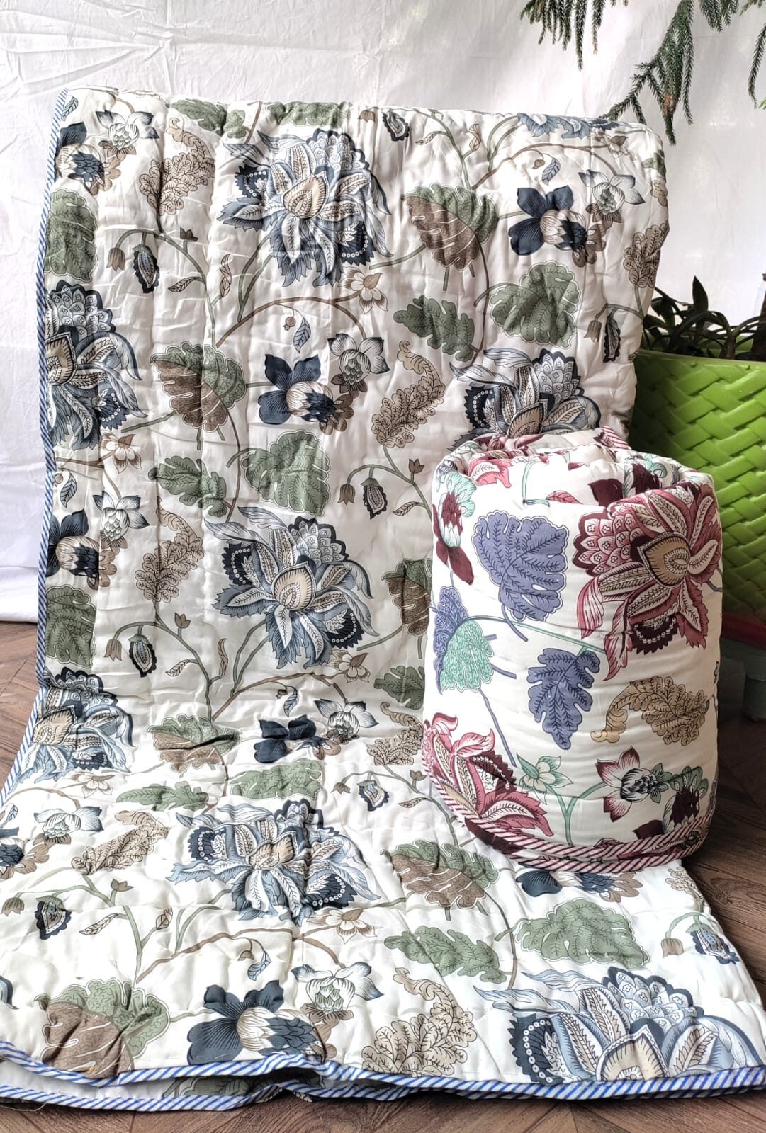 Add a touch of elegance and comfort to your home with our Anokhi Cotton Single Bed Quilts, beautifully designed with both-side prints for a reversible look.