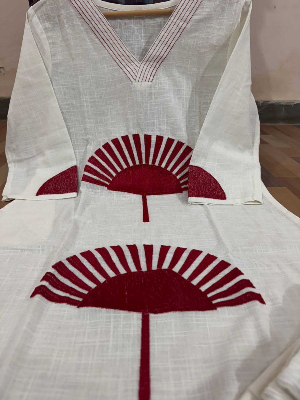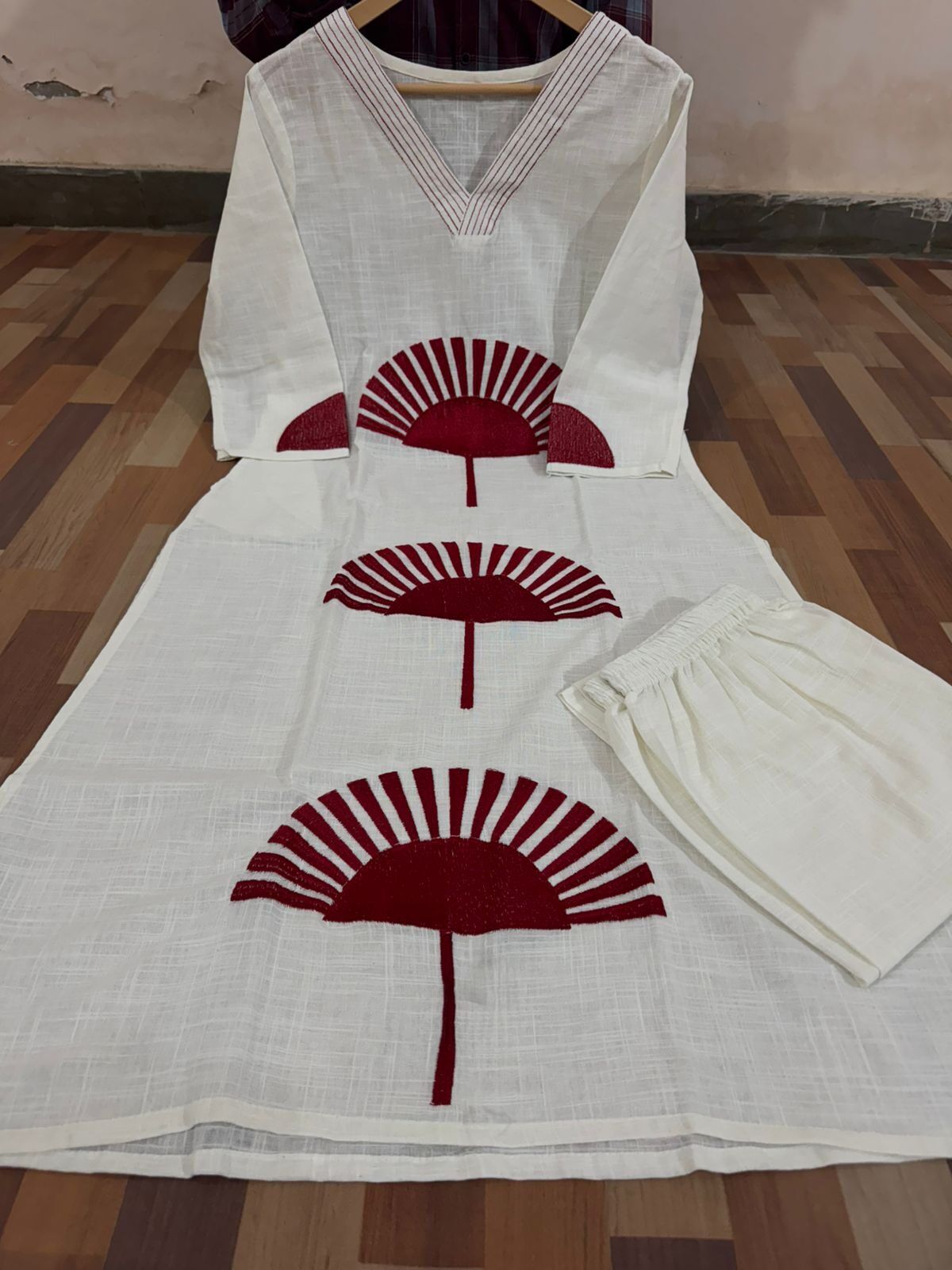Crafted from premium Cotton Slub fabric, this set offers a soft, breathable feel — ideal for both office wear and regular wear. The kurti features beautiful heavy embroidery on one side pocket, adding a subtle touch of sophistication to your everyday look.