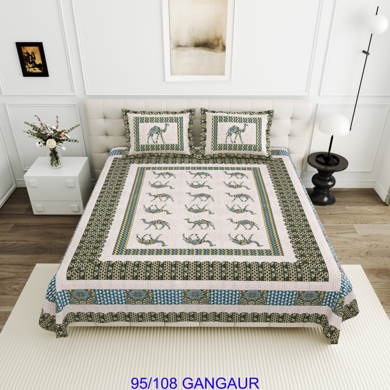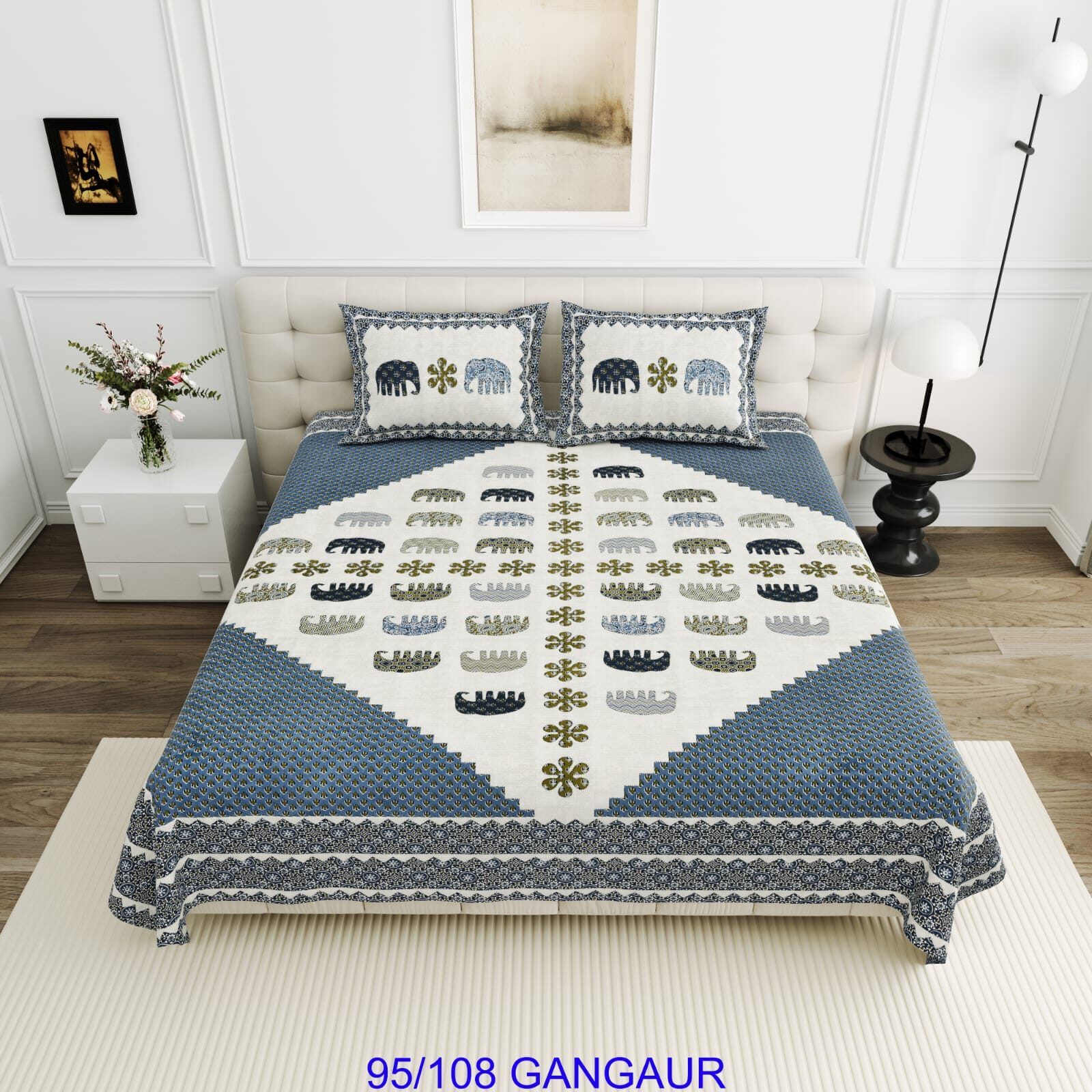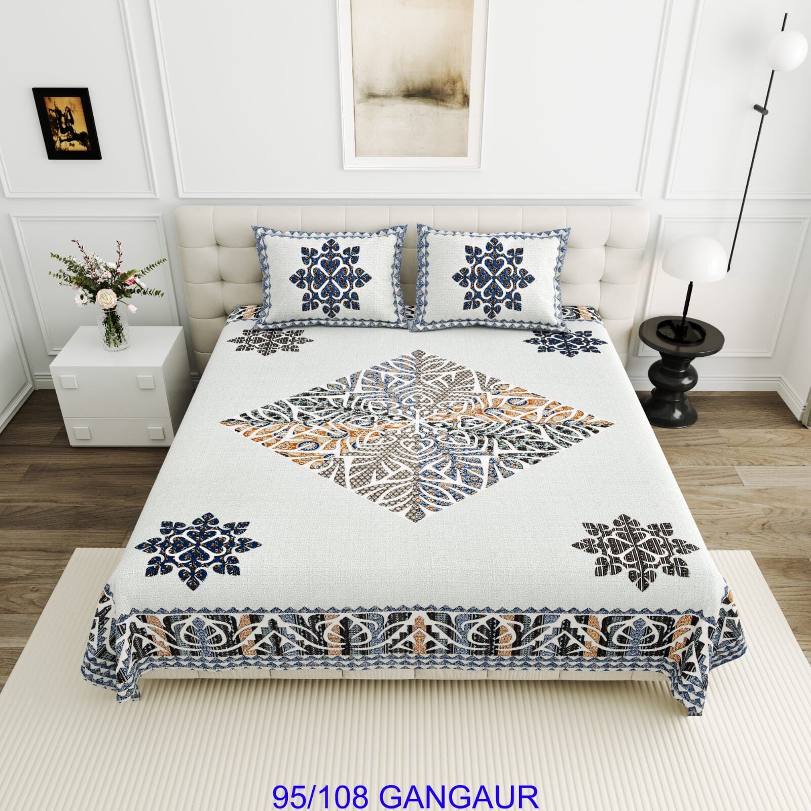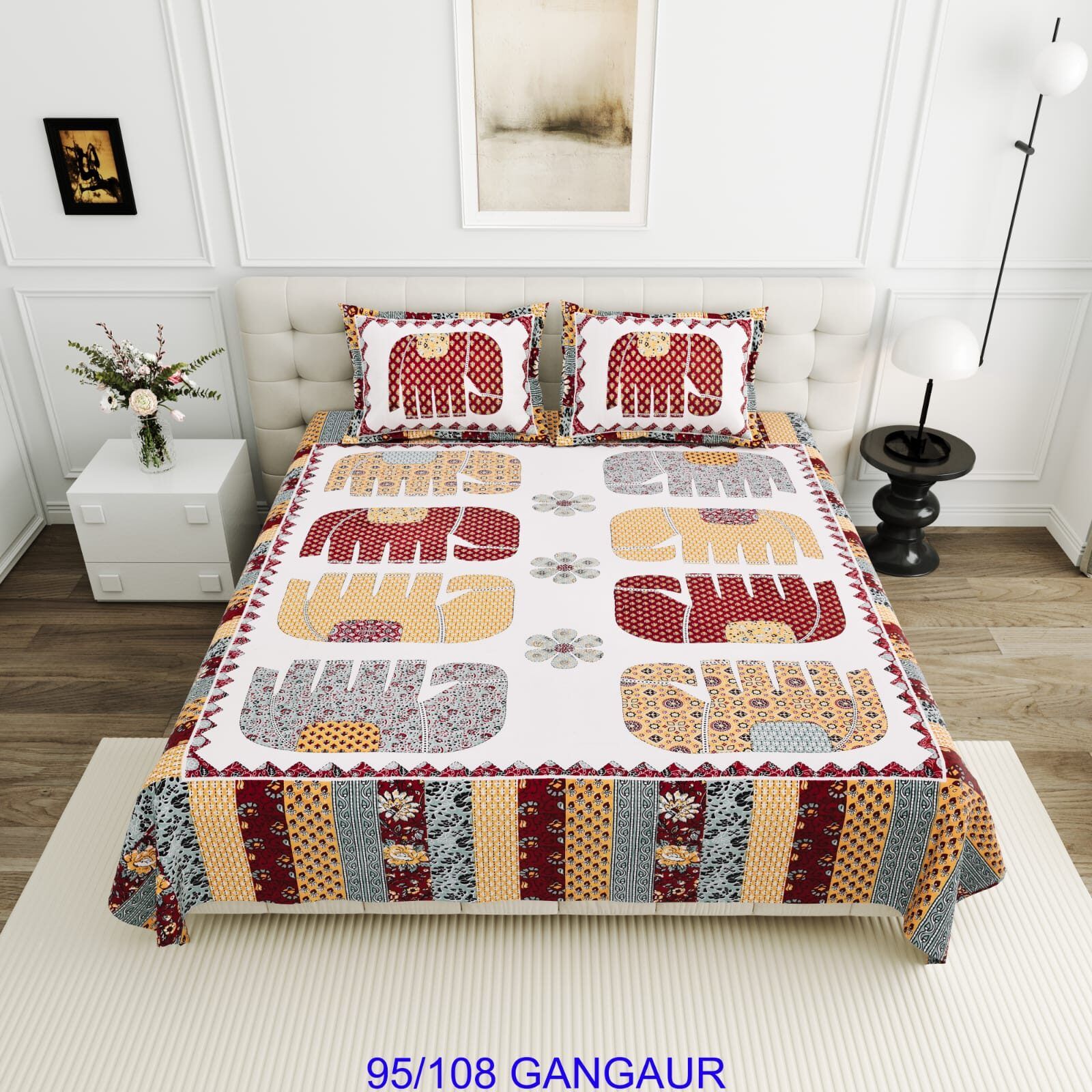 Bring comfort and elegance to your bedroom with the GANGAUR King Size Bedsheet Set. Crafted from a Cotton-Viscose blend fabric with a soft cotton-like feel, this bedsheet offers both durability and comfort. The set comes with 2 matching flap pillow covers for a complete look.