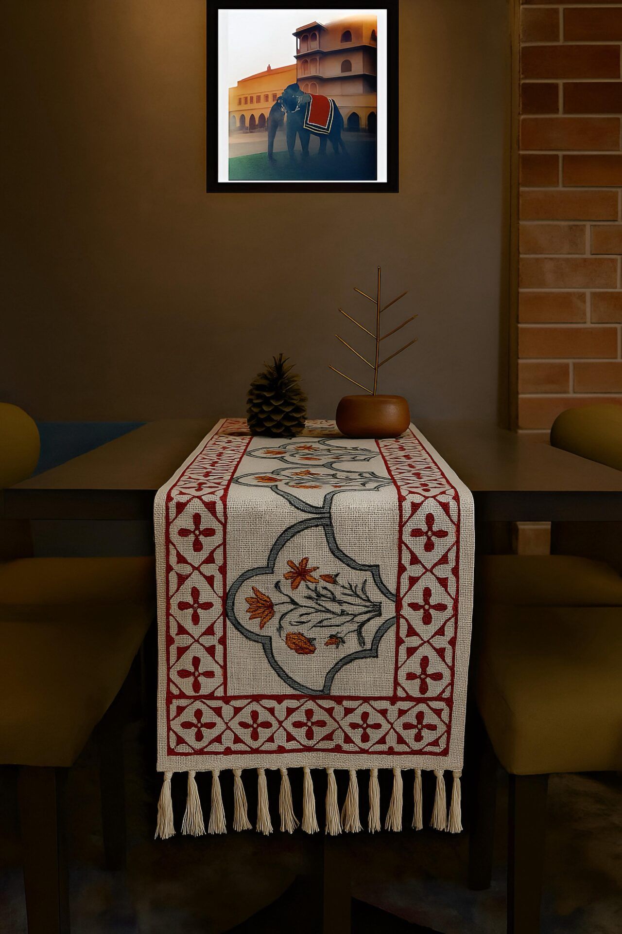Handblock Jute TNT Table Runner | 13×72 Inches | Machine Washable