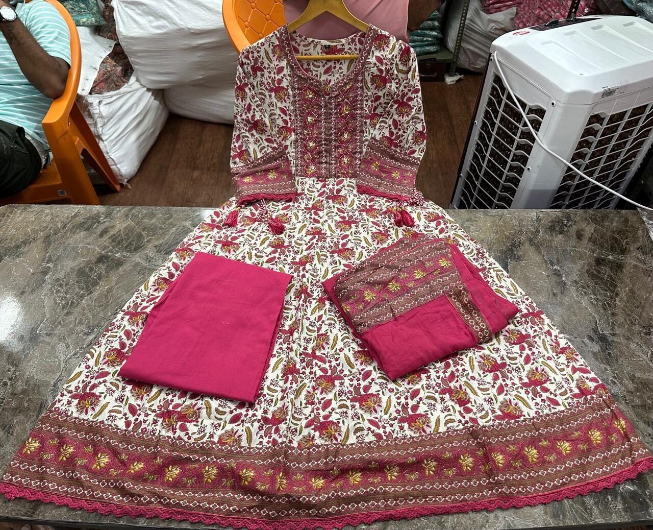 Step into timeless elegance with this beautifully flared Anarkali suit, crafted to make you look effortlessly graceful. Inspired by dreamy movie looks, this outfit blends traditional charm with modern comfort — perfect for festive occasions or casual celebrations.