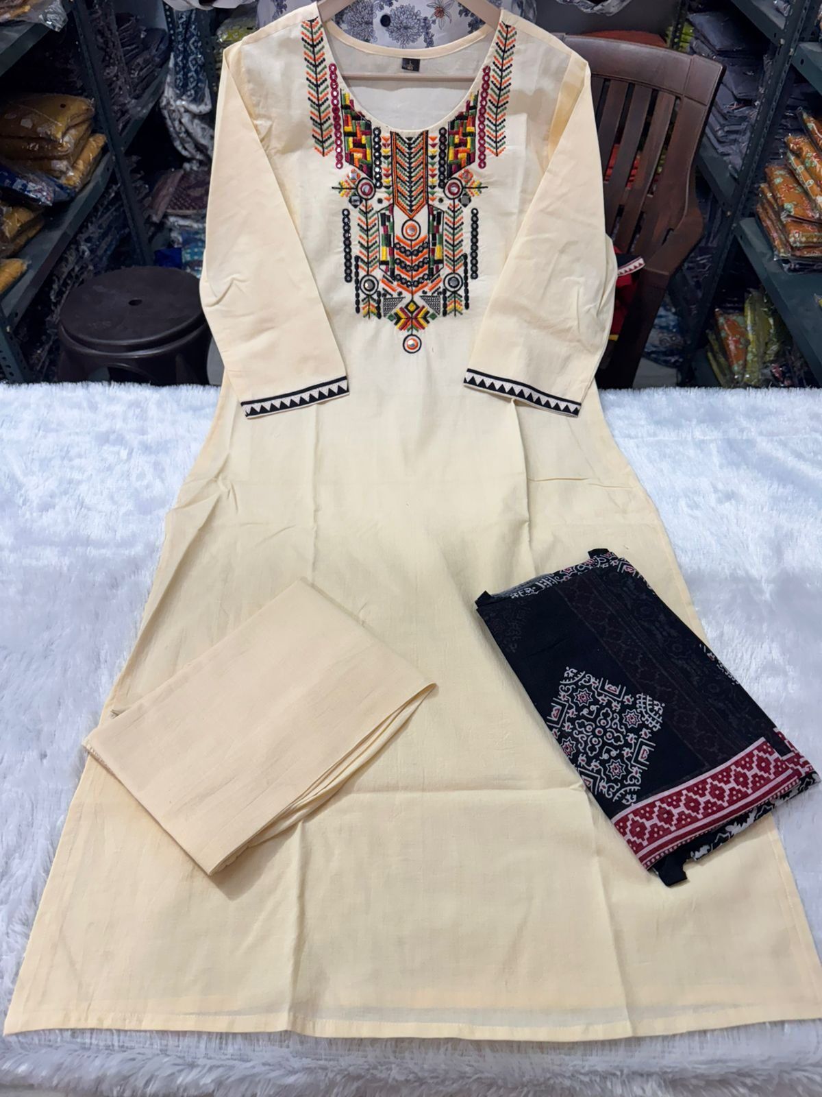 Upgrade your ethnic wardrobe with our New Collection Pure Cotton Suit Set, crafted in fine heavy cotton fabric for all-day comfort and elegance. This 3-piece set includes an embroidered kurta, matching pant, and a soft 100×100 cotton dupatta – making it the perfect outfit for festive occasions, family gatherings, or casual celebrations.